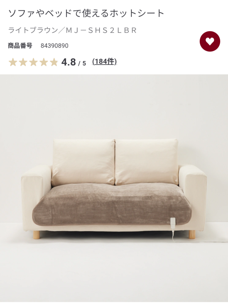 ということで、1月の寒波が来ている時、無印良品のホットシートを導入しました!